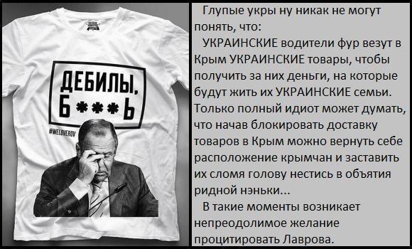 Если хозяева фур начнут платить, как на Донбассе, по 150-200 тыс гривен за фуру, чтобы проехать, то Джемилев и правосеки будут в шоколаде. Если водилы фур затеют кипешь и их фуры закидают коктейлями молотова - будет как в Мукачево, типа, "происки ФСБ".