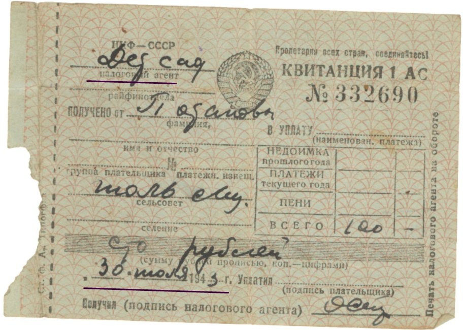 Гвоздь в крышку твоего вранья о бесплатностях. На фото квитанция об оплате детского сада в 1943 году.
