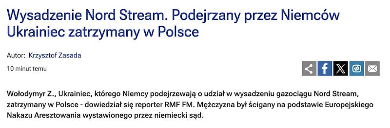 В Польше в городе Прушкув задержан гражданин Украины Владимир Ж., которого немецкие власти подозревают в участии в диверсии на газопроводах «Северный поток-1» и «Северный поток-2».