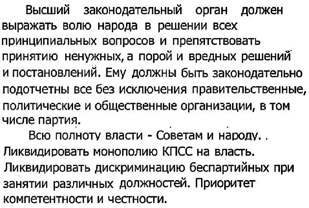 К этому времени политические позиции Горбачёва были весьма слабы, но он решил отказаться от силового давления и передать часть властных полномочий республикам. Это оказалось именно тем, за что упорно боролся Ельцин: существенным ослаблением влияния союзного центра на жизнь республик." (С)