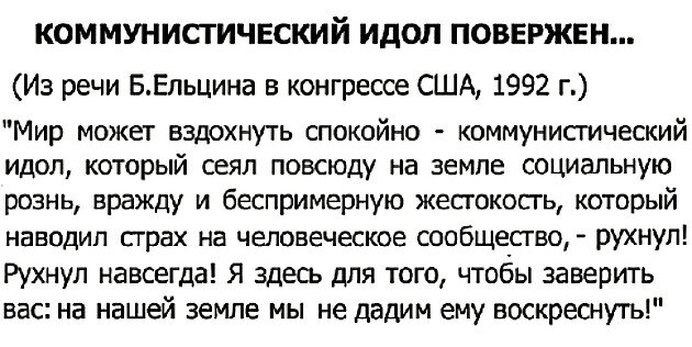 Из речи Б.Ельцина в конгрессе США, 1992 г