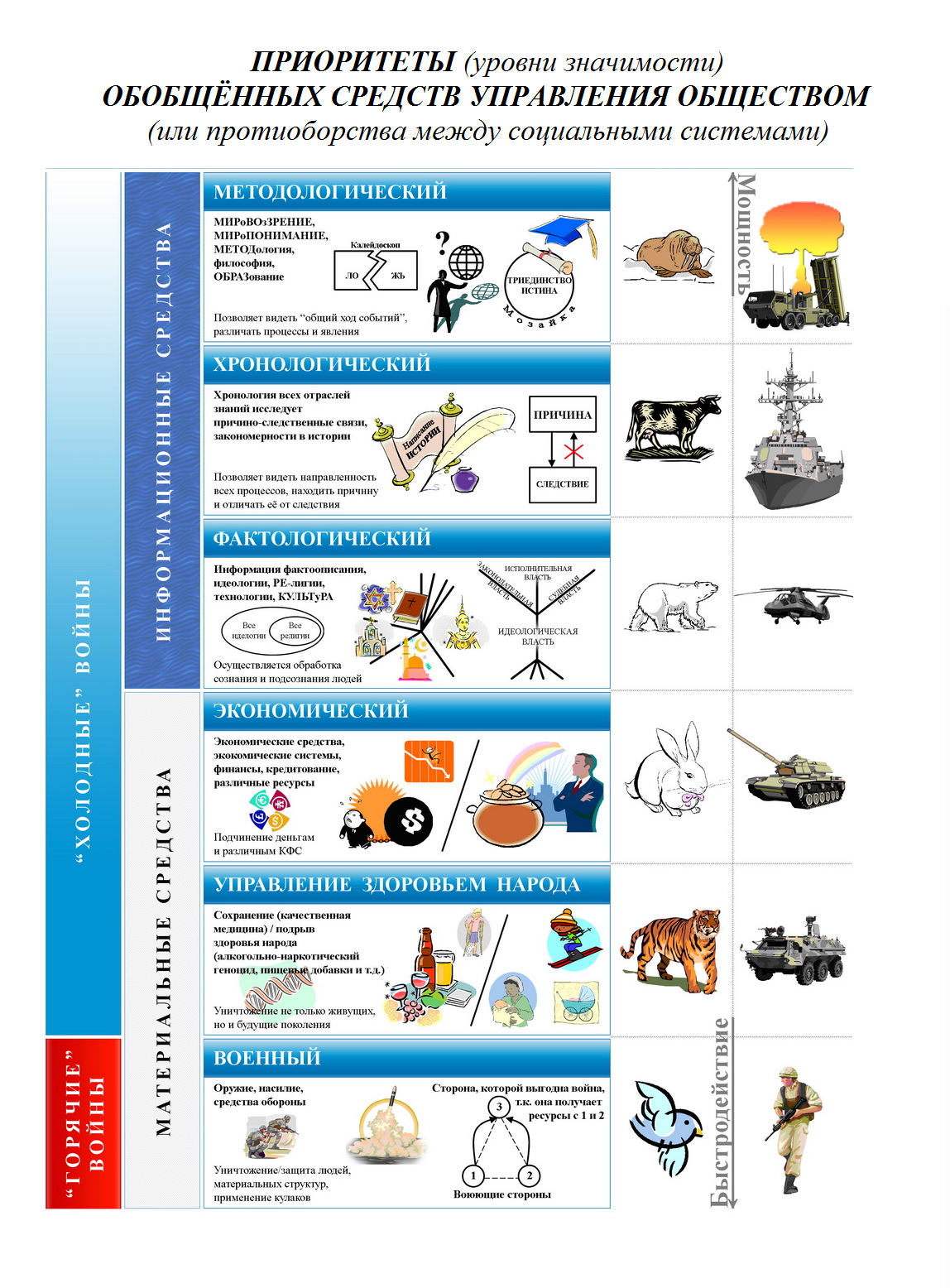 Хочу подчеркнуть, что сила воздействия и устойчивость результата обратно пропорциональны простоте и скорости реализации воздействия. Чем проще и быстрее работает приоритет, тем короче и слабее его воздействие. И наоборот, чем сложнее и дольше реализация, тем устойчивее результат. Это важно понять тем, кто призывает срочно хватать оружие - результат будет быстрым, но слабым и краткосрочным.