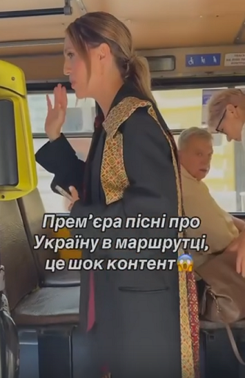 Автобус почти пустой,в нём нет ни одного мужчины,скоро их не будет на украине вовсе.Война, в экономике жопа,все друг друга бояться и ненавидят,а эта дурочка про любоффь поёт.....