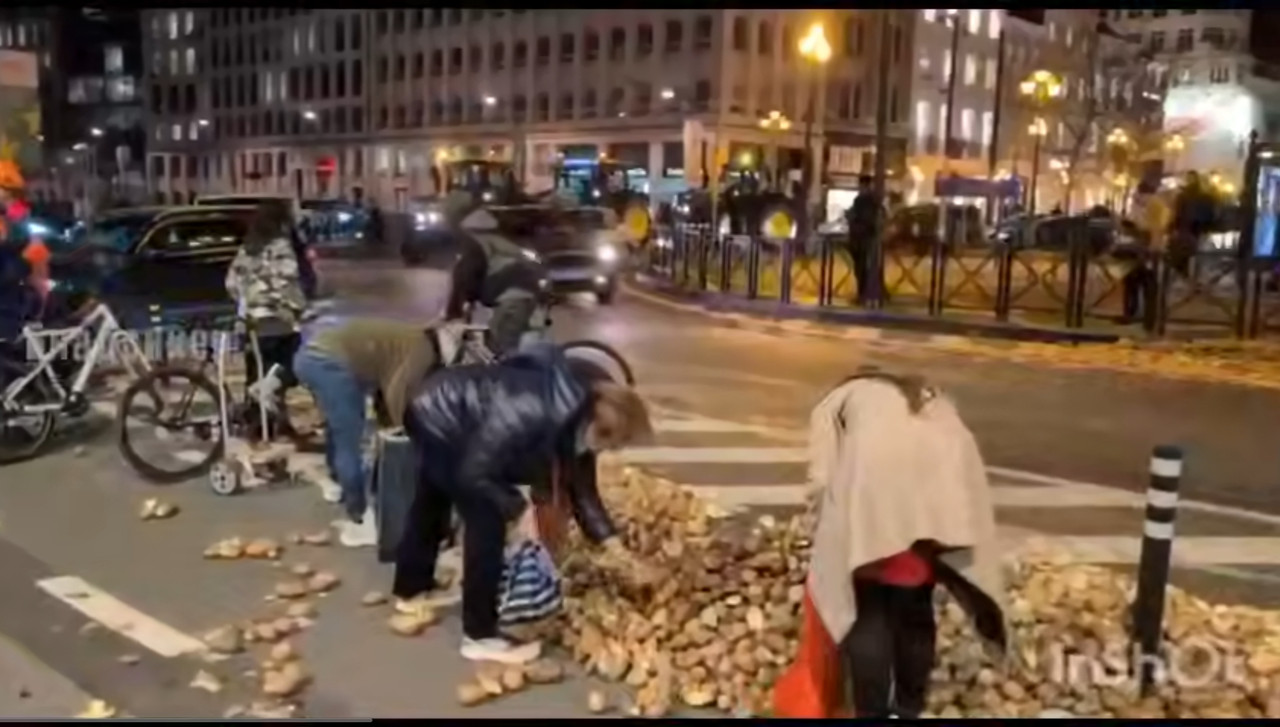 Во время вчерашних протестов в Брюсселе фермеры закидывали Европарламент картошкой, в то время как сегодня ночью местные жители собирали эту картошку по пакетам и тащили домой.